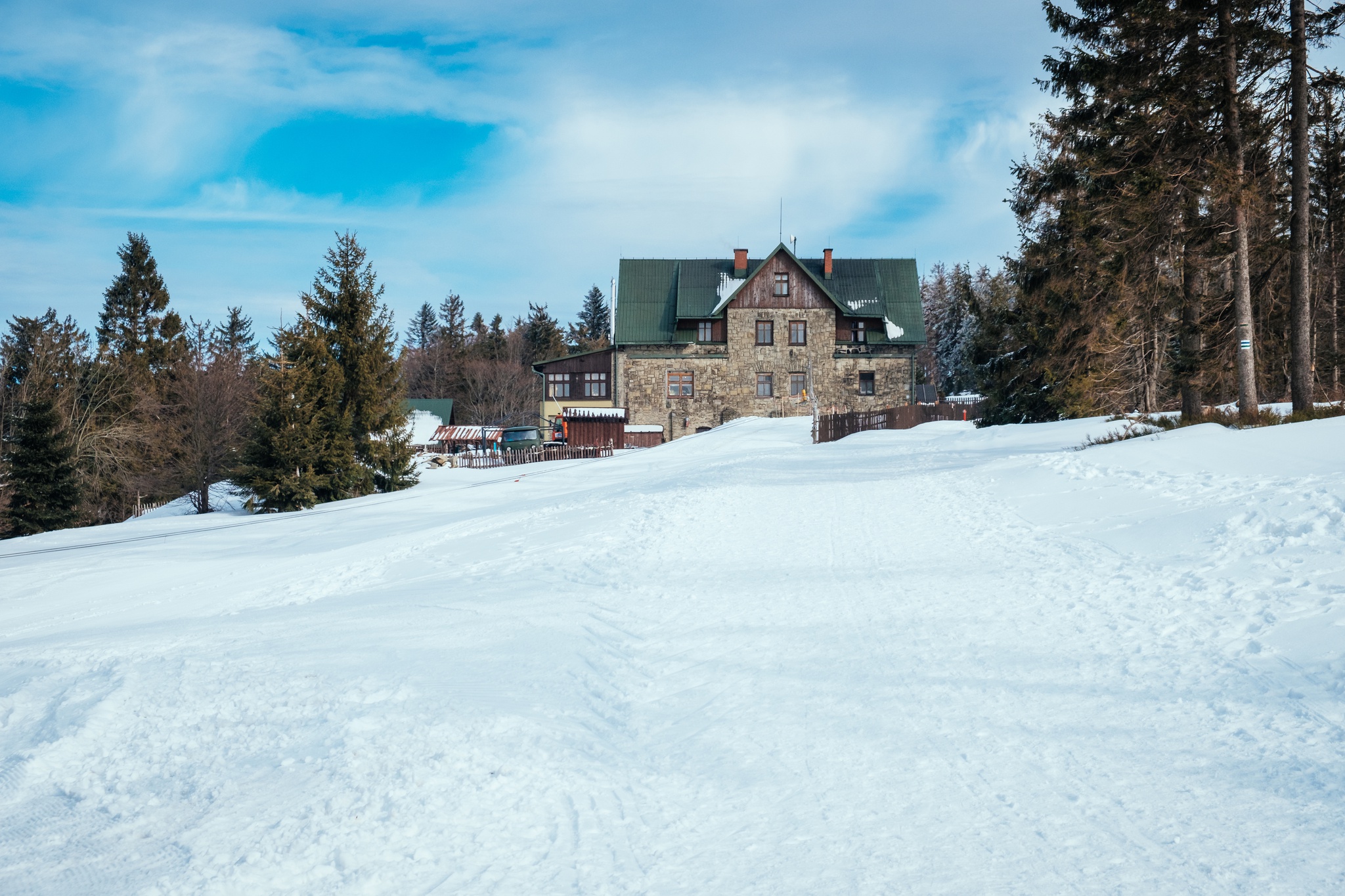 Zaczynamy więc w okolicy stacji w Wiśle Głębcach, odszukujemy zielone znaki szlaku na Kubalonkę, zapinamy narty albo rakiety (niepotrzebne skreślić) i ruszamy w lewo. Ul. Klonową dochodzimy do szosy Wisła – Istebna, którą podążamy kawałeczek poboczem, po czym przed ostrym zakrętem drogi w lewo – wchodzimy na starą drogę wozaków.