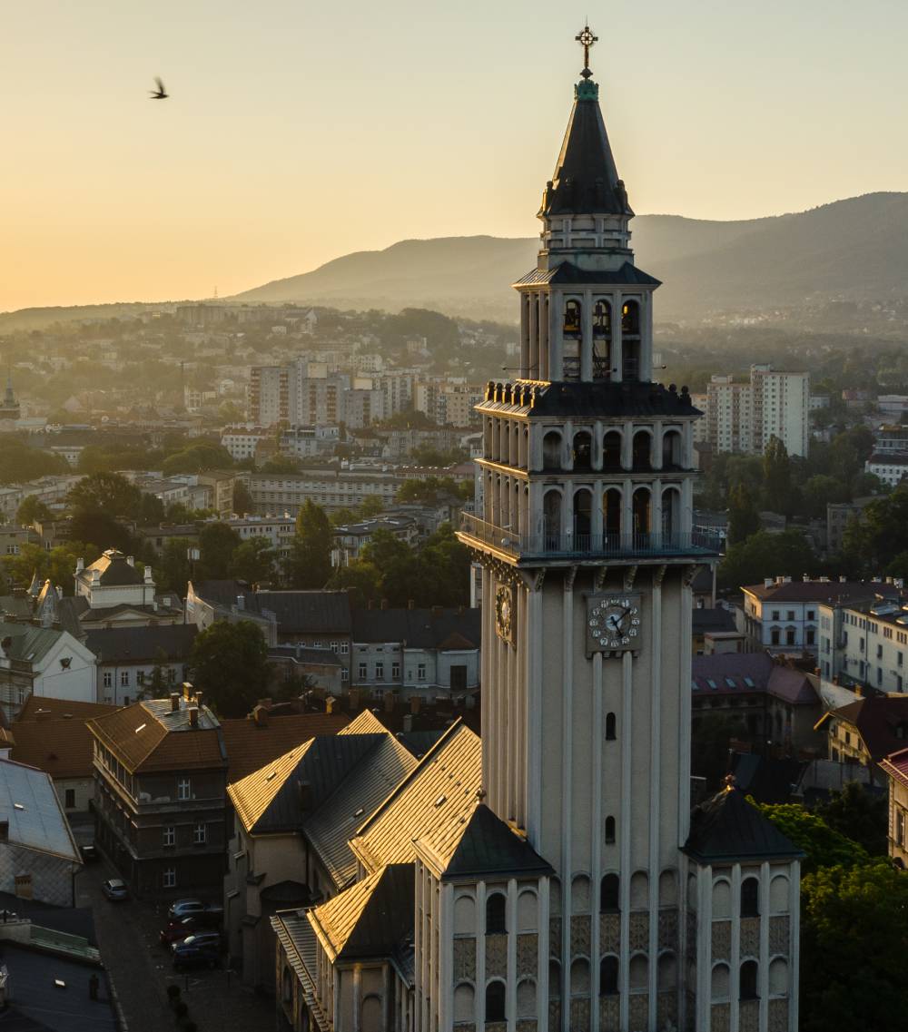 Nasz spacer zaczniemy od Rynku, kierując się ul. Kościelną ku dawnej farze bielskiej św. Mikołaja – od 1992 r. katedrze rzymsko-katolickiej diecezji bielsko-żywieckiej.