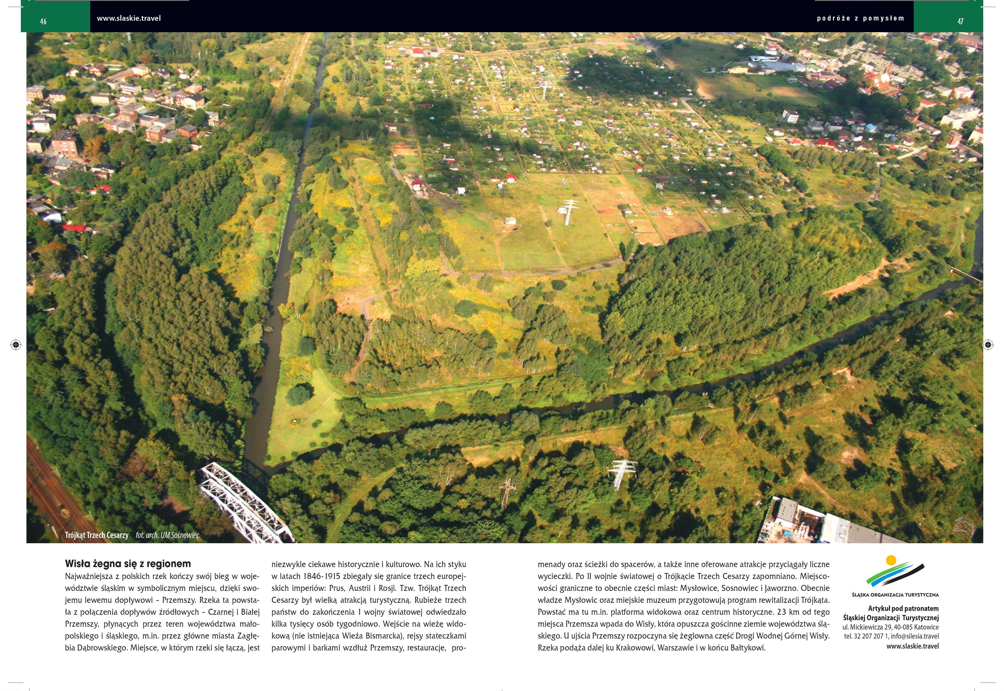 Z przyjemnością czytać można o nadwiślanych miejscowościach, o "Śląskim Morzu", "Żabim Kraju" i Trójkącie Trzech Cesarzy.