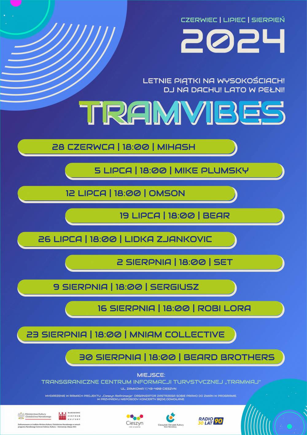 Wraz z wakacjami rozpoczynamy sezon wydarzeń plenerowych w Cieszynie! Poza sztandarowymi i lubianymi od lat cyklami, takimi jak Wakacyjne Kadry, w tym roku nie zabraknie nowości! A wśród nich TRAMVIBES czyli letnie piątki na wysokościach! Co piątek od 28 czerwca do 30 sierpnia od 18:00 na dachu Transgranicznego Centrum Informacji Turystycznej przy popularnym Tramwaju, swoje umiejętności będą prezentowali kolejni DJ'e, którzy wprawią nasze kończyny w ruch!