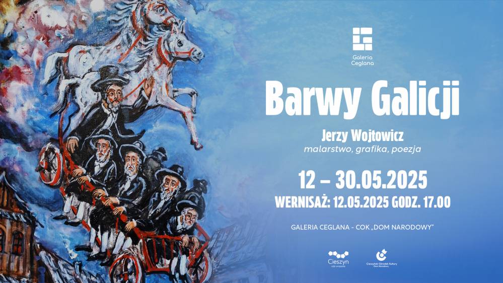 Cieszyński Ośrodek Kultury "Dom Narodowy" zaprasza na wystawę malarstwa, grafiki i poezji Jerzego Wojtowicza pt. "BARWY GALICJI". Wystawa obejmuje cykl prac o tematyce żydowskiej i organizowana jest w ramach Dni Kultury Żydowskiej.