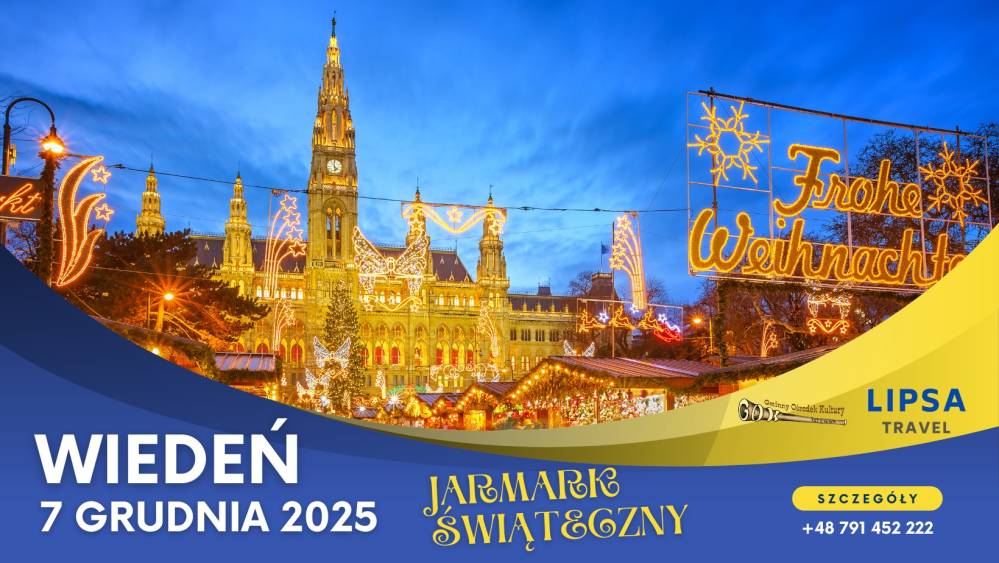 W niedzielę, 7 grudnia 2025 r. wyruszymy na jednodniową wycieczkę, podczas której poczujemy prawdziwą magię Adwentu – odwiedzimy słynne wiedeńskie jarmarki świąteczne, rozświetlone tysiącami lampek, pachnące piernikami