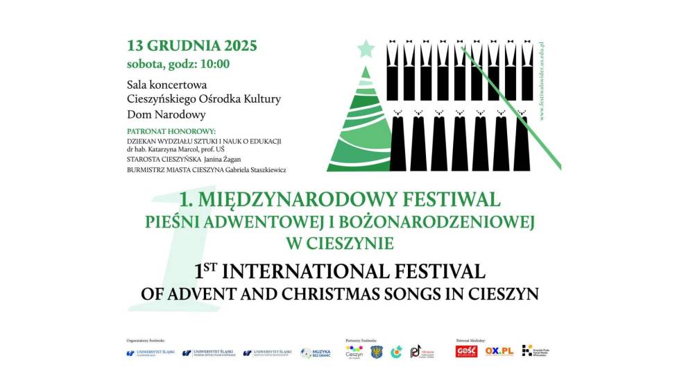 Fundacja Muzyka Bez Granic wraz ze współorganizatorami i partnerami zapraszają na 1. MIĘDZYNARODOWY FESTIWAL PIEŚNI ADWENTOWEJ I BOŻONARODZENIOWEJ W CIESZYNIE.
