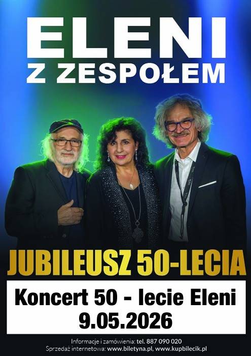 Zapraszamy do Teatru im. Adama Mickiewicza w Cieszynie na koncert jubileuszowy  50-lecie ELENI z zespołem, który odbędzie sie 9maja 2026 r.
