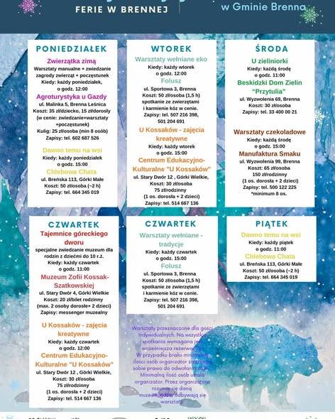 Warsztaty odbywają się w każdy wtorek i czwartek. Szczegóły na plakacie: