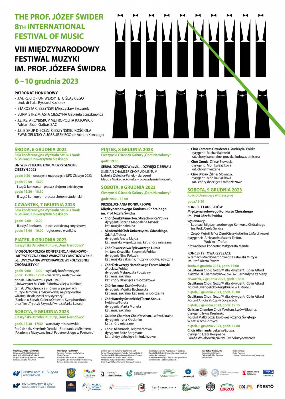 W dniach 6-10 grudnia 2023, ponownie odbędzie się w Cieszynie Międzynarodowy Festiwal Muzyki im. Józefa Świdra – jednego z najbardziej rozpoznawalnych w świecie kompozytora muzyki chóralnej.