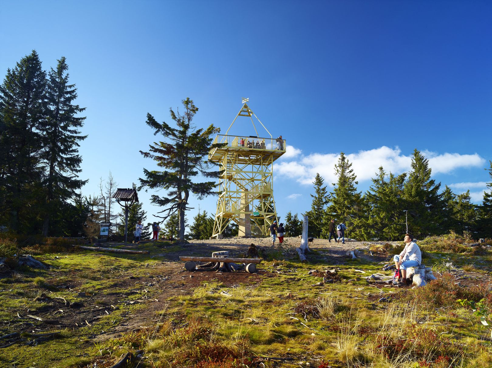 Ze znajdującej się na szczycie wieży widokowej, zbudowanej w 1991 r. społecznym wysiłkiem kilkunastu działaczy PTTK z Oddziału Górnośląskiego w Katowicach, podziwiać możemy rozległą panoramę. Wśród najbliżej położonych pasm górskich bardzo dobrze widać stąd właściwie wszystkie najważniejsze szczyty Beskidu Śląskiego, za którymi na wchód i północny wschód dostrzeżemy także znacznie niższe pasma Beskidu Małego. Widok stąd na południe i wschód obejmuje także Beskid Żywiecki z charakterystyczną Babią Górą, masywem Pilska i Lipowskiej oraz grupą Wielkiej Raczy. Na zachód, za bliżej położonymi pasmami Beskidu Śląskiego, prezentują się szczyty Beskidu Morawsko-Śląskiego z Łysą Górą, znajdujące się już na terenie Republiki Czeskiej. Przy lepszej pogodzie, w oddali, na południu, uwagę zwraca pasmo Małej Fatry, położone na terenie Słowacji. Widać stąd również szczyty Tatr.